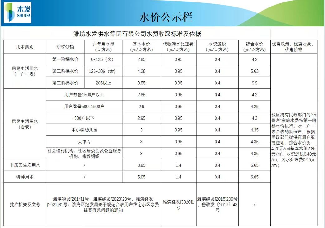 水價(jià)公示